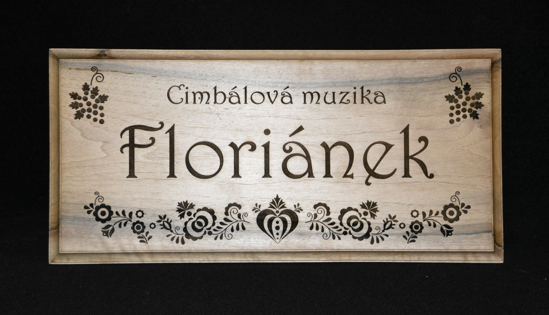 Deska na cimbál :-) Deska z ořechového dřeva a gravírovaným nápisem a ornamenty. Deska na cimbál - CM Floriánek Obrázek 2 z 2