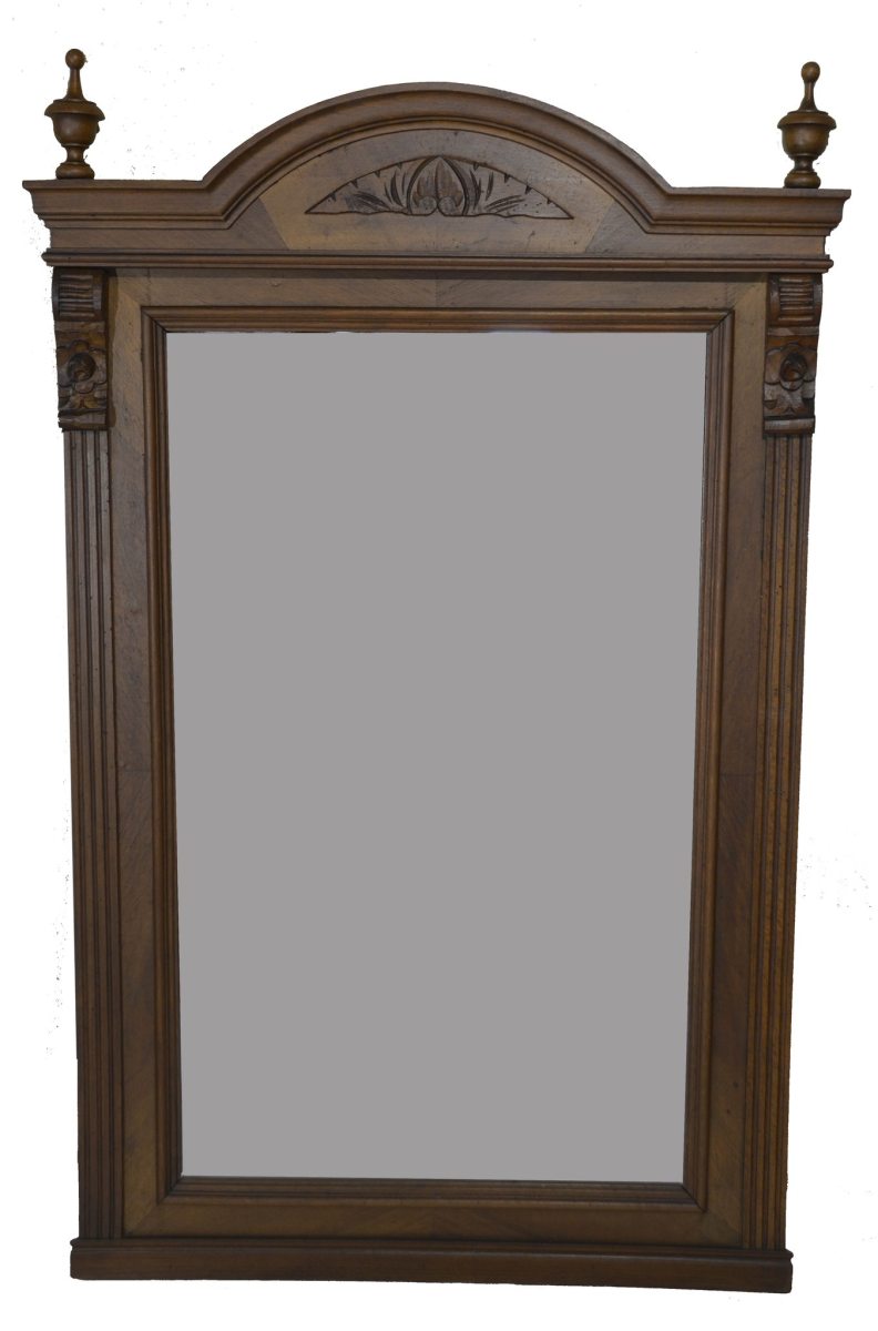 Obnova starého zrcadla, nalezeného ve škarpě. Z původního nálezu, pravděpodobně z nějaké vestavby v ložnici, zůstaly pouze ozdobné sloupy. Nově vyrobený je rám, horní a dolní deska a ozdobné rámovací lišty. Mořeno, aby se co nejvíce sjednotila barva s původní barvou sloupů. Poté voskováno Osmo voskem. Nově zaskleno.