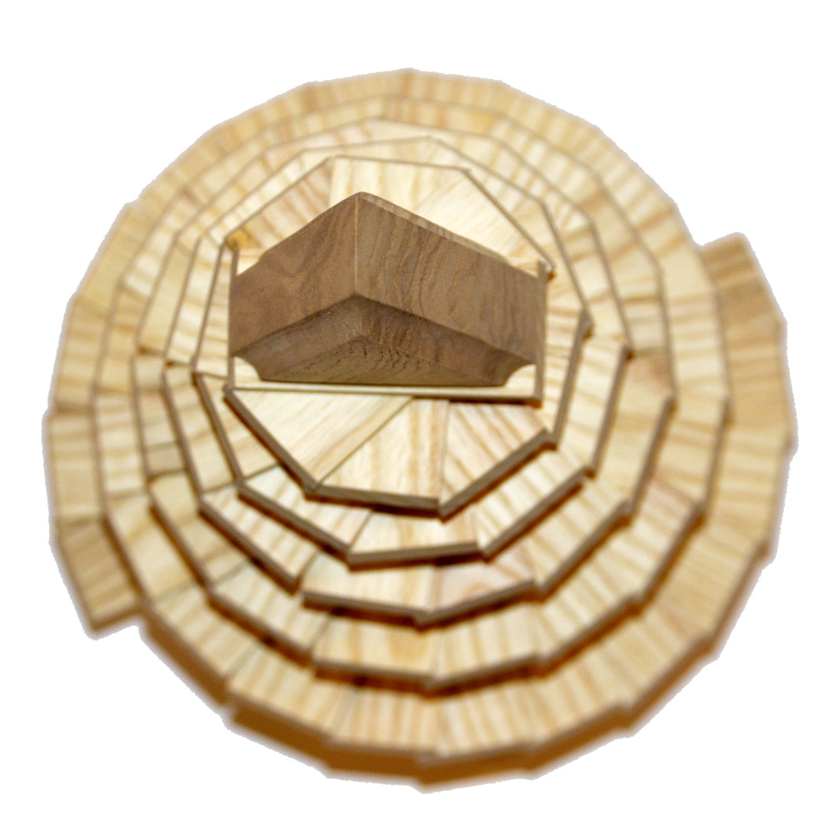 Vánoční stromky, které nikdy neuschnou. Jsou vyrobeny z různých druhů dřev. Destičky jsou navlečeny na šroubovici, která je upevněna ve stojánku pomocí matice. Po rozvinutí desek lze opět utažením špičky aretovat polohu desek a tvar stromku. Stromek lze složit k uskladnění. Otáčením špičky na opačnou stranu dojde k uvolnění desek a stromek lze složit k uskladnění.